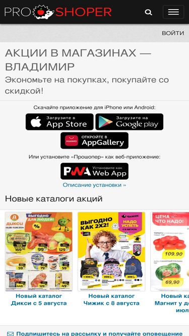 96%акции и каталоги товаров в магазинах и супермаркетах сегодня: пятерочка, перекресток, дикси, metro, окей, лента, лента мини и других.