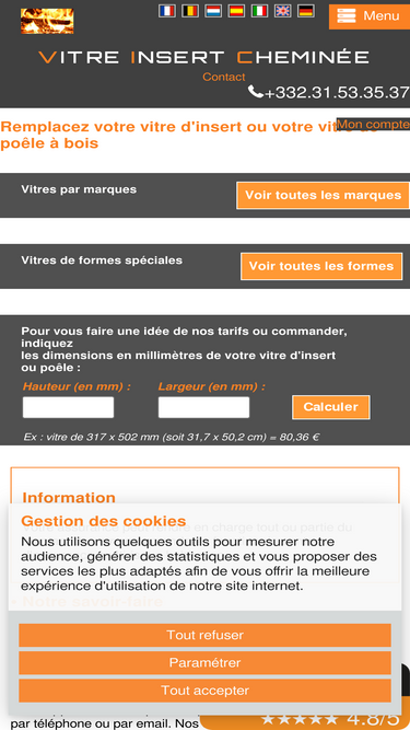 100%Informations concernant la vitre d'insert de cheminée ou de poêle qu'il vous faut. Livraison, assurance, emballage.