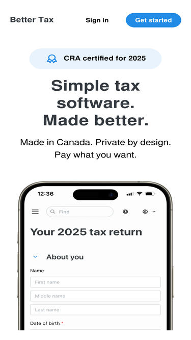 100%File your 2025 taxes online and get your maximum refund. Better Tax is CRA NETFILE certified, pay what you want, and built by friendly Canadians.