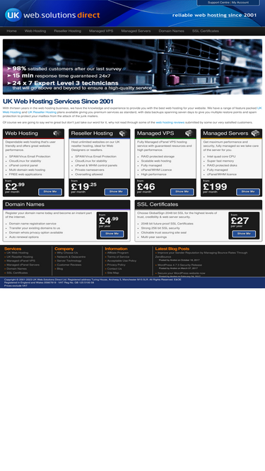 98%providing fast uk web hosting since 2001. feature packed including free web applictions, cpanel control panel and daily backups.