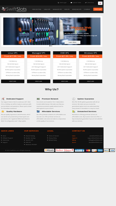 90%swiftslots offers secure and reliable offshore vps hosting, shared hosting and reseller hosting with guaranteed 99.9% uptime and 24x7customer service.