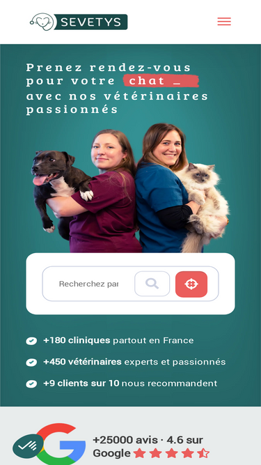 63%Trouvez rapidement un vétérinaire près de chez vous et prenez rendez-vous en ligne gratuitement. Consultez les conseils de nos experts sur les animaux.