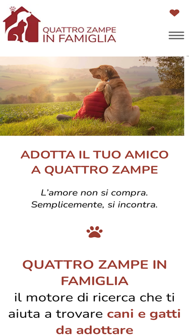 100%Il motore di ricerca che ti aiuta a trovare cani e gatti da adottare tra quelli che, in tutta Italia, stanno cercando una famiglia.