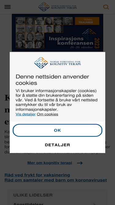 76%Norsk Forening for Kognitiv Terapi (NFKT) er en ideell medlemsforening hvis formål er å drive utdanning og å være navet innen kognitiv terapi i Norge.