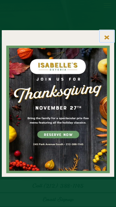100%Isabelle's Osteria is a contemporary Italian fine-dining restaurant located in the Gramercy neighborhood of New York City.