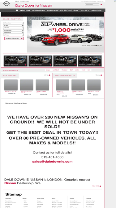 62%1-888-711-4857 | london's ultimate nissan store | dale downie nissan in london sells and services new and used cars, trucks and suvs | nissan new car sales and financing | service department | body shop | nissan parts | serving st. thomas, london, woodstock, chatham, kitchener, goderich, kincardine, and surrounding areas.