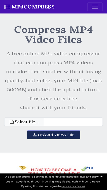 82%Mp4Compress è uno strumento gratuito per comprimere video MP4 online, in grado di comprimere i file video MP4 per renderli più piccoli senza perdere qualità. Basta selezionare il file MP4 (massimo 500 MB) e fare clic sul pulsante per caricarlo.