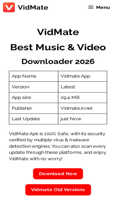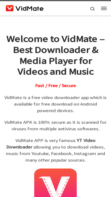 96%Download latest version of VidMate APK from the official site. and enjoy unlimited MP4 Videos, Movies, Music. You can easily download videos from Youtube, Facebook, Instagram, Twitter, Tiktok and more.