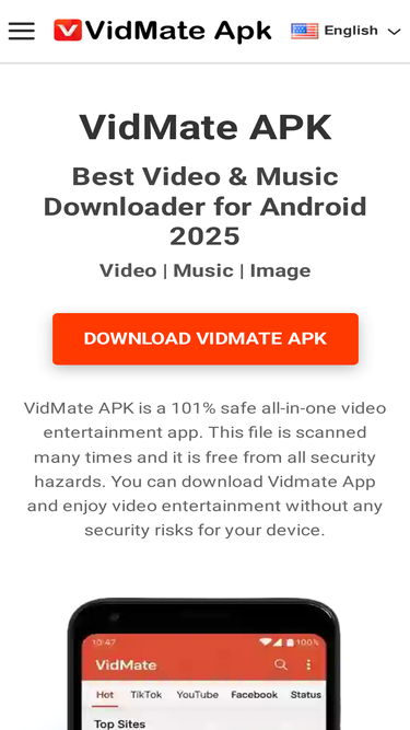 95%Download VidMate APK best free video downloader for Android. Save HD videos, MP3 songs, and movies from YouTube, Facebook, WhatsApp, TikTok, and 1000+ platforms.