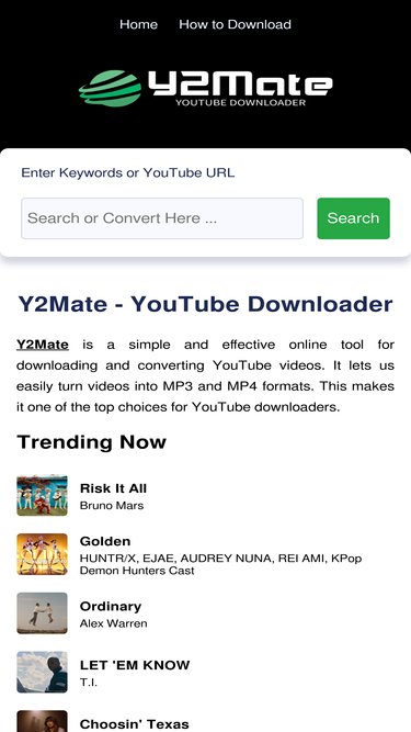 59%Download and Convert YouTube videos to MP3 or MP4 effortlessly with Y2Mate. Enjoy fast, free, and high-quality downloads for endless entertainment.