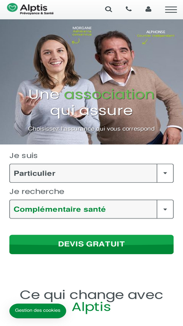 89%Devis en ligne : complémentaire santé, prévoyance, assurance de prêt. Particulier, travailleur indépendant et frontalier, retraité et entreprise, Alptis protège près d’un demi-million de personnes.