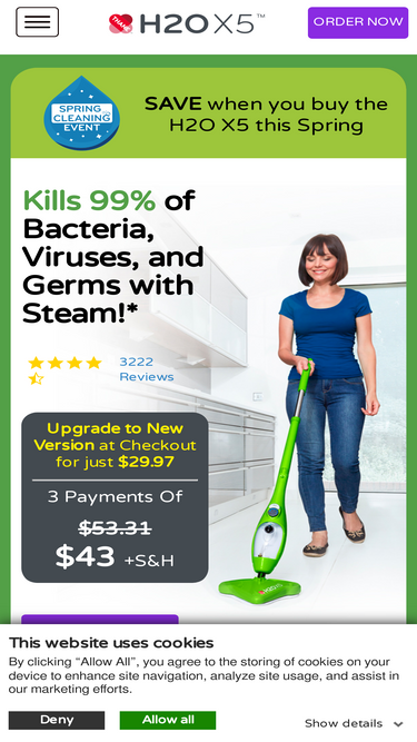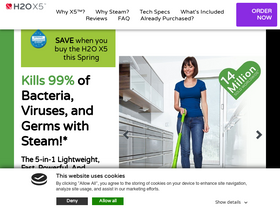 76%h2o x5-in-1 steam mop with 1300 watts of steam cleaning power. the h2o x5® heats up in less than 30 seconds and help cleans floors, carpets, windows and more.