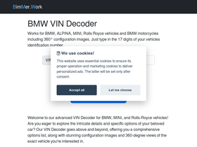 84%BMW VIN Decoder retrieves detailed information about the equipment and production details of BMW, ALPINA, MINI and Rolls Royce vehicles and BMW motorcycles. Attached are generated photos of your configuration.