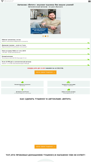98%автоматический автоклав вятич с тэн 2 квт - по цене обычного! полноценный паровой режим - дышащий клапан. тушенка в 10 раз быстрее, чем на воде. корпус из стали aisi 403.