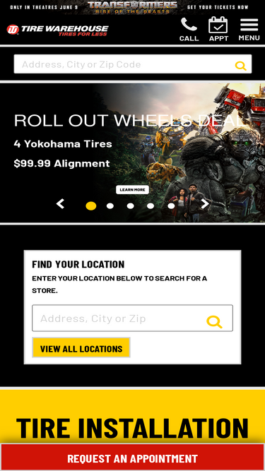 Tire Warehouse tire shop offers tire discounts, mounting & balancing, tire rotations, flat tire repairs and more. Same day appointments available.