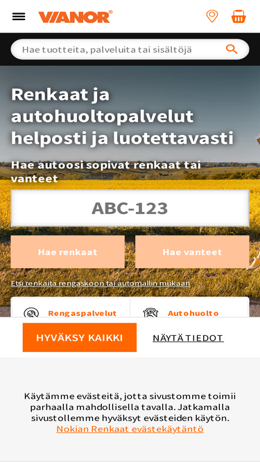 67%Vianorilla voit ostaa renkaat ja autohuoltopalvelut osamaksulla tai laskulla. Vianor Tilillä saat 10 kk korotonta ja kulutonta maksuaikaa. Lue lisää.
