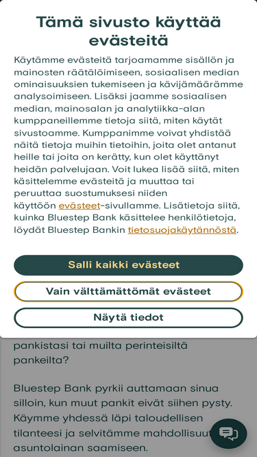 100%Bluestep Bank on erikoistunut auttamaan silloin, kun perinteiset pankit eivät siihen pysty. Lue lisää Bluestep Bankista.