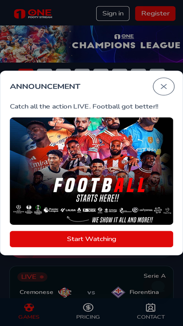 88%Watch live football matches from top leagues around the world in HD on One Footy Stream. No ads, no delays — just pure football action, anytime, anywhere.