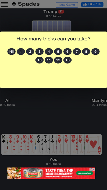 84%Play online Spades - the most popular card game. And it's free!