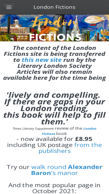 The content of the London Fictions site is being transferred to this new site run by the Literary London Society Articles will also remain available here for the time being