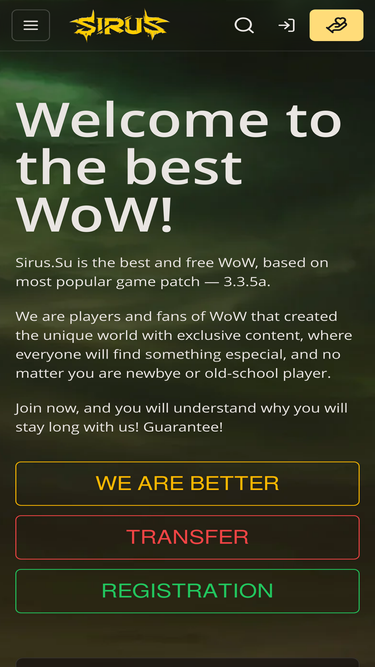 91%sirus.su - бесплатный игровой сервер world of warcraft 3.3.5 с собственным дополнением, новыми расами, подземельями, альтернативной системой прокачки персонажа