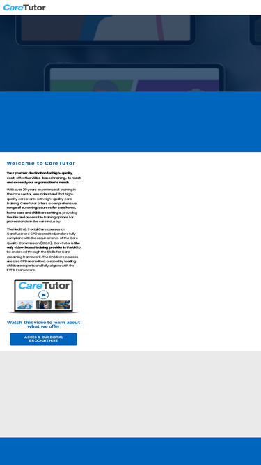 73%CareTutor offers the best in Healthcare, Social Care and Child Care eLearning. Our courses are endorsed by Skills for Care, CPD accredited, and CQC compliant.