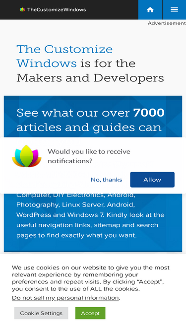 100%This sitemap is a list of pages of TheCustomizeWindows accessible, organized in hierarchical fashion, and is usable to the users.