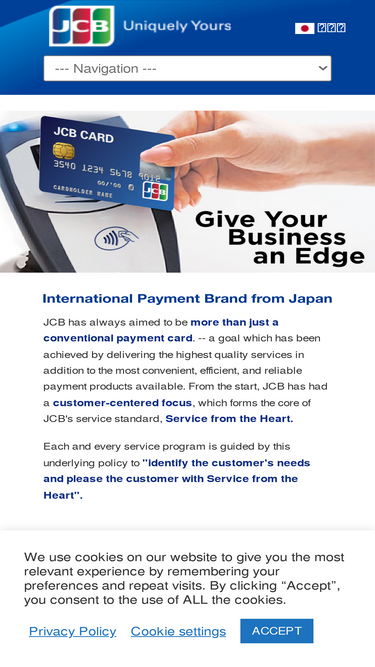 100%Gateway to Consumers in Asia Accepting JCB opens business to a new world of customers 175M+ Cardmembers* 71M Merchants JCB is a major global payment brand and a leading payment card issuer and acquirer in Asia. JCB cards are now issued in