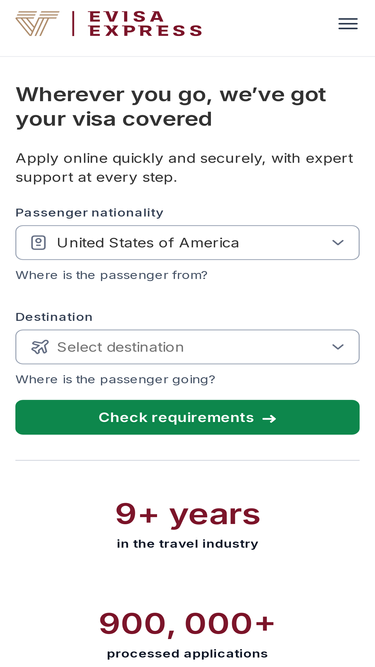 85%Evisa Express aide les voyageurs à obtenir des visas en ligne pour plus de 50 destinations, grâce à un processus de demande rapide et intuitif et une assistance de bout en bout.