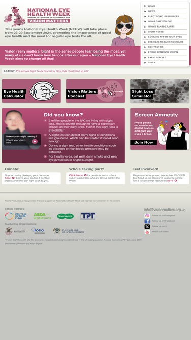 66%vision really matters. sight is the sense people fear losing the most, yet many of us don't know the best way to look after our eyes. national eye health week aims to change all that. eye care charities, organisations and health professionals from across the uk have joined together across the uk in a unique campaign to promote the importance of eye health and the need for regular sight tests for all.