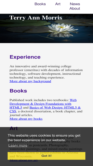 80%dr. terry ann morris (terry felke-morris) is an innovative college professor, an author of several web development textbooks (including web development & design foundations and basics of web design), a published photographer, and an emerging watercolor and acrylic artist.