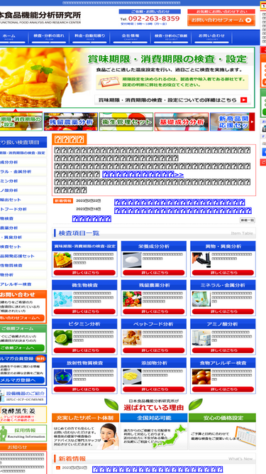 89%食品の栄養表示,賞味期限設定のための試験,衛生・品質管理のための微生物検査,農薬・食品添加物分析,アレルギー・遺伝子関連試験,異物検査,容器包装試験,環境保全関連試験,薬事試験(医薬品,医療機器,化粧品)等を承っている分析試験機関です。工場調査,haccp講習会等も行っております。