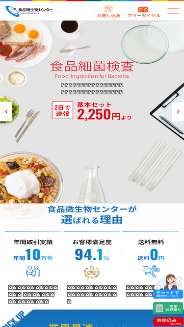 93%食品細菌検査・微生物検査などの食品検査、賞味(消費)期限検査、カロリー検査(栄養成分表示)、成分分析、衛生管理、異物検査など食に関する検査は食品微生物センターへ
