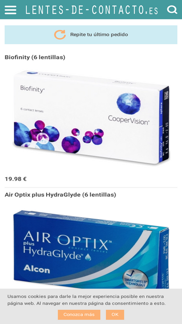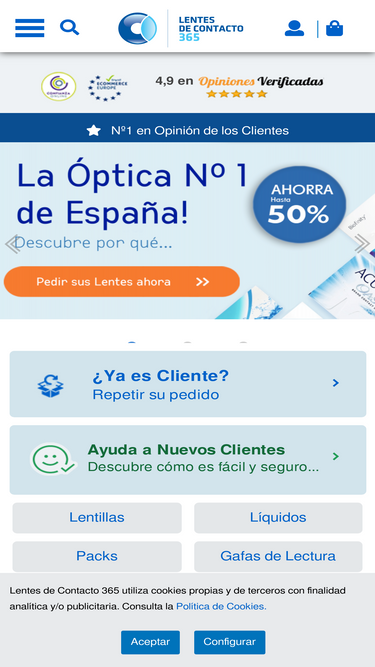 97%Condiciones de Uso y Compra en Lentes de Contacto 365: Asesoramiento profesional, Información sobre el producto, Rotura de stock ...