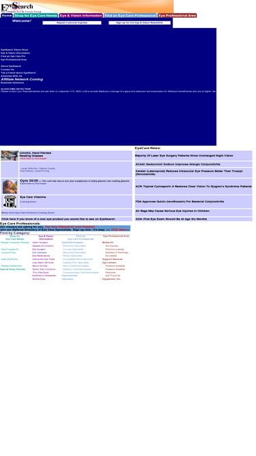 100%guide to vision and the eye, including information on glasses, contact lenses, eye diseases, eye surgery, laser surgery, including laser vision correction, along with ask eyesearch and directories of eye specialists nationwide, including ophthalmologists, optometrists, opticians and low vision services
