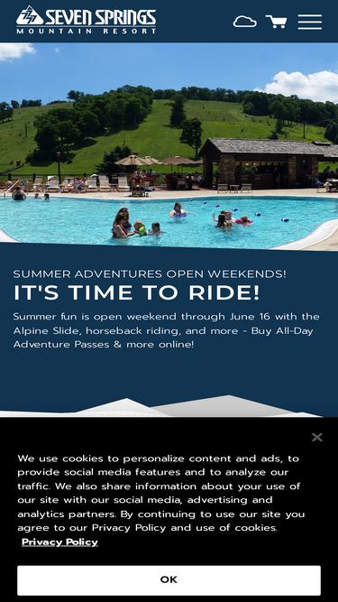 83%Seven Springs Mountain is an all-season resort for skiing, snowboarding, and tubing with family friendly activities in Pennsylvania, near Pittsburgh.