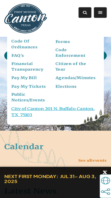 100%Canton is a beautiful city that sits an hour east of Dallas off I-20. Canton is known for its First Monday Trade Days, but it also has a lot to offer residents and visitors, from annual festivals, bi-annual music festivals, The Tailwind Regional Balloon Fest to our Chamber of Commerce 4th of July Parade and Lighted Christmas Parade. There are also many wonderful attractions from our very own Cherry Creek Park with a castle full of climbing and swinging activities for the kids to disc golf for the families, Splash Kingdom Waterpark, Buffalo Creek Speedway, Rocky Ridge Safari, YesterLand Farm and we are the Walking Capital of Texas. We have parks that include walking trails, fishing areas, basketball and Tennis courts and soccer fields.