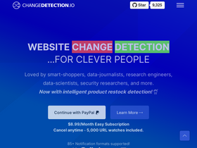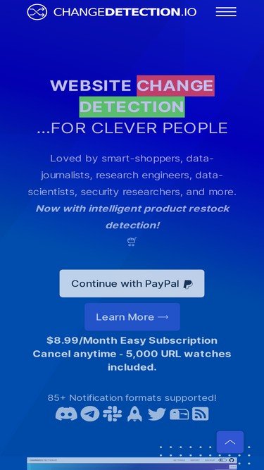87%Track website web-page changes and get instant notifications. An open-source alternative to Visualping and Distill.io. Monitor web page content, price changes, and availability updates with ease.