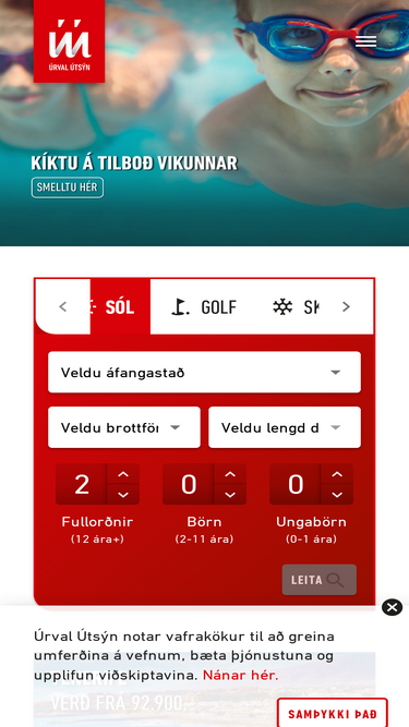 99%ferðir og verð við allra hæfi. sólarferðir, borgarferðir, golf- og skíðaferðir og spennandi sérferðir. vertu með í netklúbbnum og fáðu spennandi tilboð í sól. kíktu við í hlíðasmára 19 eða hringdu í 585 4000