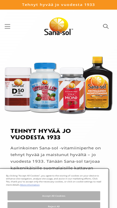 91%Sana-sol tarjoaa kaikenikäisille suomalaisille kattavan valikoiman vitamiineja, kivennäisaineita ja ravintolisiä koko perheelle 3-vuotiaasta lähtien.