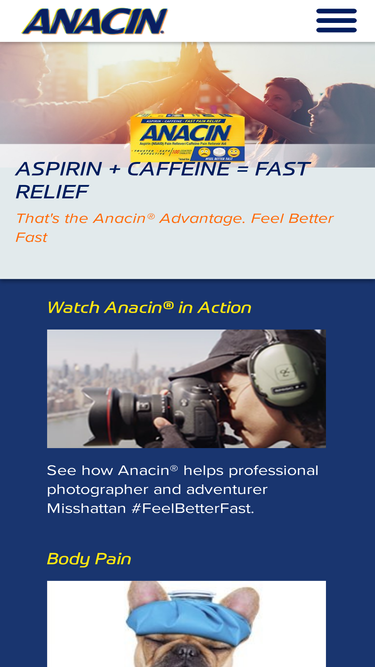 the combination of anacin's ingredients of aspirin and caffeine work fast to relieve pain when you need it most.