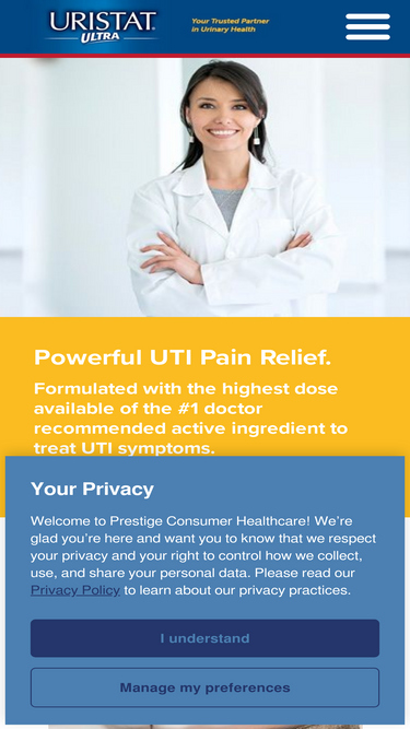 100%uristat®, your trusted partner in urinary health™, contains the #1 doctor recommended otc ingredient for fast, temporary relief of uti pain.
