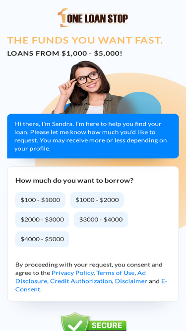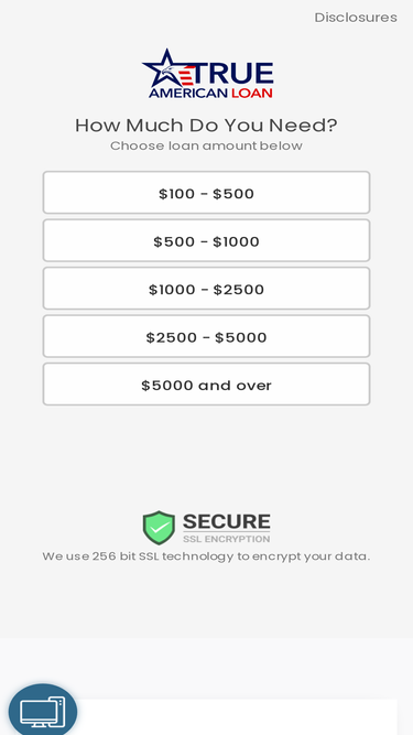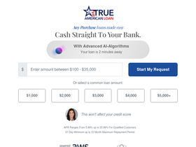 88%with trueamericanloan, you can receive funding up to $35,000. we have extensive partnerships with large authorized lenders. this allows us to cover almost all 50 states. if approved, the loan may be received in as soon as the next business day from the privacy of your own home.