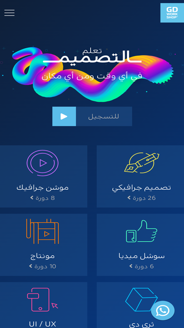 85%منصة متخصصصة بتقديم دورات تدريبية في مجال التصميم الجرافيكي، المونتاج، الموشن، الرسم ثلاثي الأبعاد، الرسم وغيرها من التخصصات. نسعى لتقديم محتوى عربي بأساليب تعليمية حديثة. حيث نضع بين أيديكم خبرة مجموعة من المدربين لتحصل عليها في أي مكان وفي أي وقت