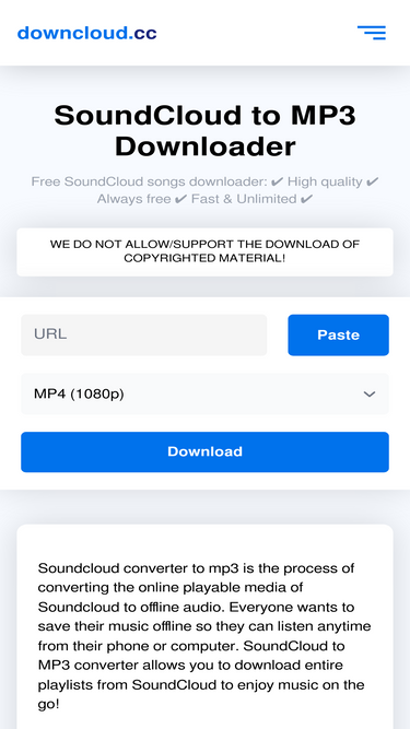 84%साउंडक्लाउड ट्रैक और प्लेलिस्ट को उच्च गुणवत्ता में एमपी3 में डाउनलोड करें। हमारा मुफ़्त ऑनलाइन साउंडक्लाउड डाउनलोडर तेज़, आसान है और 320kbps का समर्थन करता है। किसी सॉफ़्टवेयर की आवश्यकता नहीं - URL पेस्ट करें और अभी कनवर्ट करें!