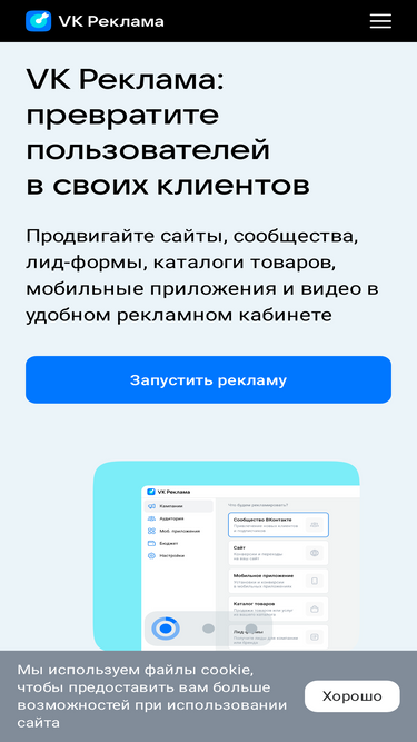 90%VK Реклама — единая платформа для продвижения бизнеса на проектах VK и в Рекламной сети. Запускайте кампании в рекламном кабинете и взаимодействуйте с пользователями соцсетей, сайтов, мобильных приложений и медиапроектов, превращая их в ваших клиентов.