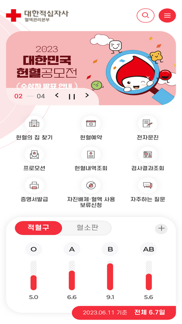 83%혈액관리본부 홈페이지에 오신 것을 환영합니다.