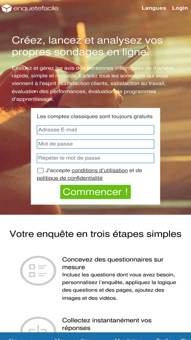 98%Outil Web d’enquêtes en ligne N°1 en Europe et Amérique latine. Il permet d’élaborer des enquêtes de manière simple et rapide. TEST GRATUIT