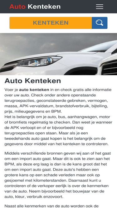 96%Check gratis en razendsnel alle gegevens van uw auto. Voer een geldig kenteken in en krijg alle beschikbare gegevens van de auto.
