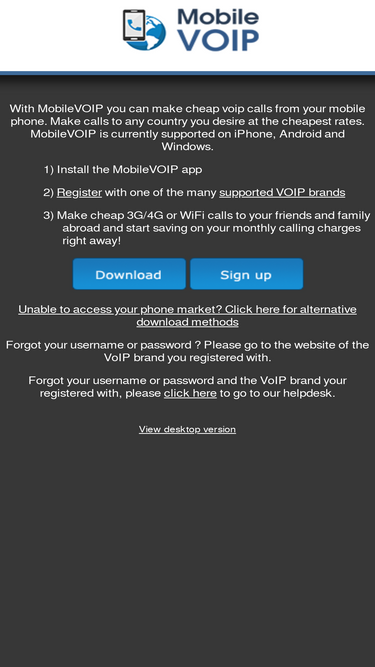 69%http://www.mobilevoip.com/ MobileVOIP will enable you to use your regular VoIP account on your Android, Windows phone, or iPhone.